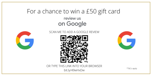 Every quarter we’ll be giving a £50 gift card to one guest who leaves us a Google review.